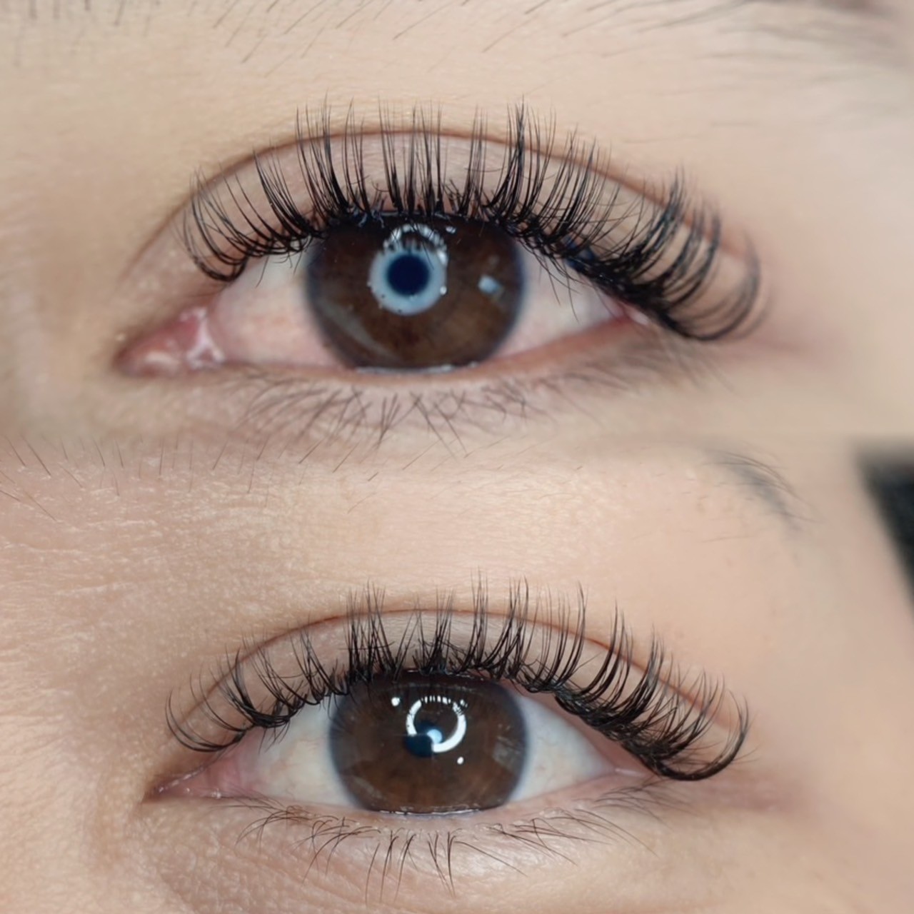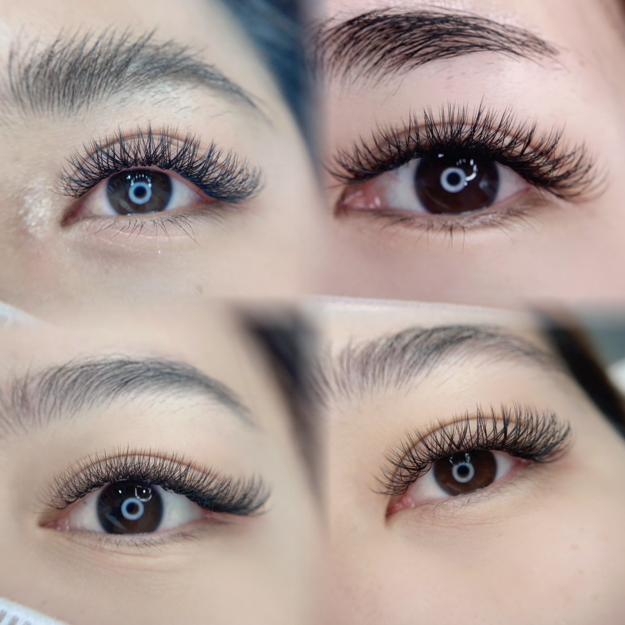 - Volume Lash Extensions: เป็นการต่อขนตาที่ทำให้ดูหนาและเต็มมากขึ้น โดยการต่อขนตาปลอมหลายเส้น (เช่น 2D, 3D, 4D หรือมากกว่า) ลงบนขนตาจริงหนึ่งเส้น ทำให้ขนตาดูหนาขึ้น เหมาะสำหรับผู้ที่ต้องการลุคที่ดูโดดเด่น